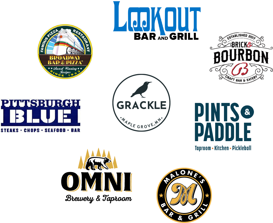 2025 restaurants include: Angeno’s, Brick & Bourbon, Broadway Pizza, Buca, Chanticlear, Dave & Busters, Grackle, Granite City, Highlander Pub at Rush Creek, Kingdom Coffee, Kpot, Malone’s, Maple Tavern, Nautical Bowls, Nothing Bundt Cakes, Omni Brewery, PF Changs, Pints & Paddle, Pittsburgh Blue, Pizza Karma, Portillo’s, Potbelly, Riviera Maya, Rojo, Sawatdee, The Lookout, Tono and the Village Inn.